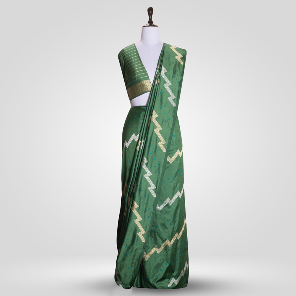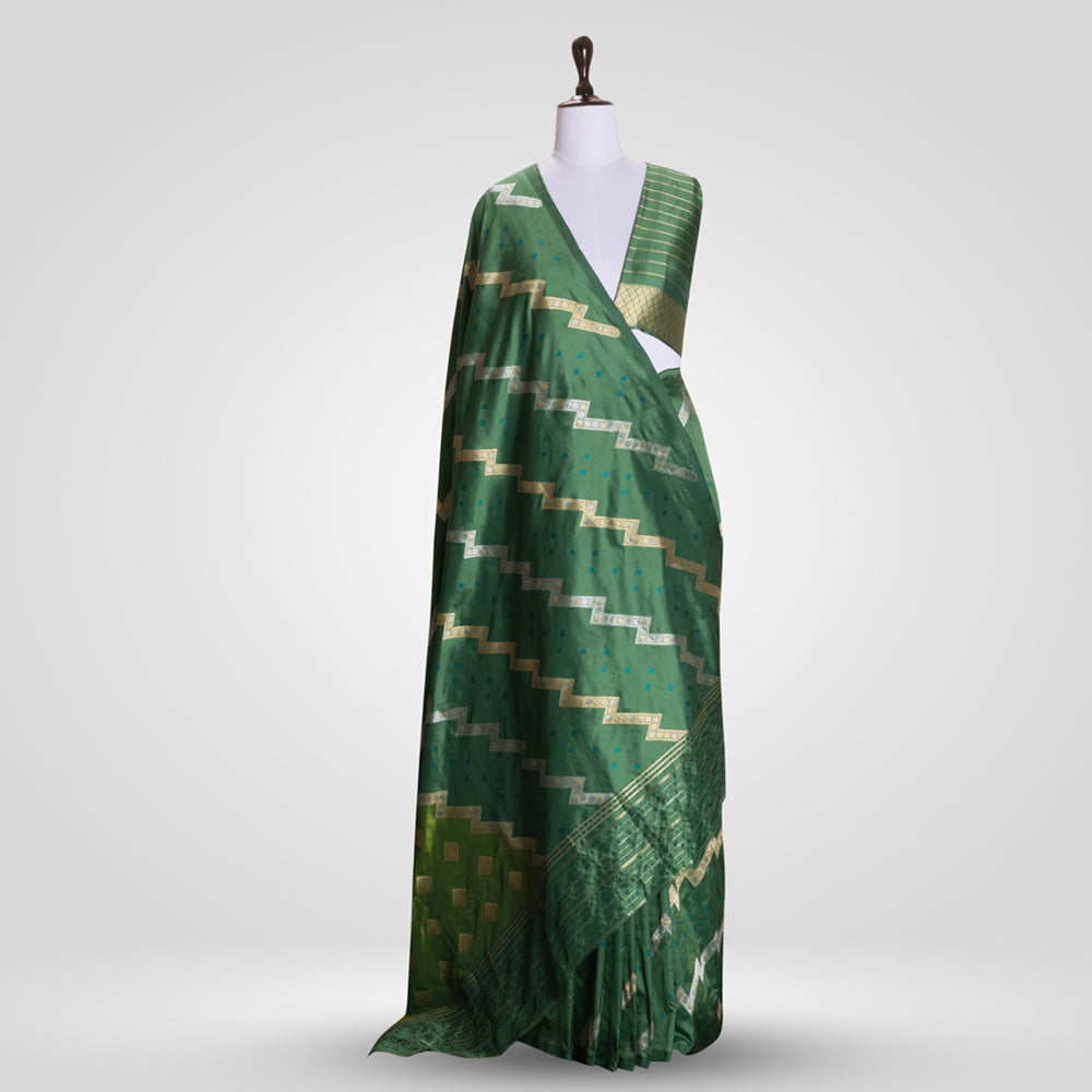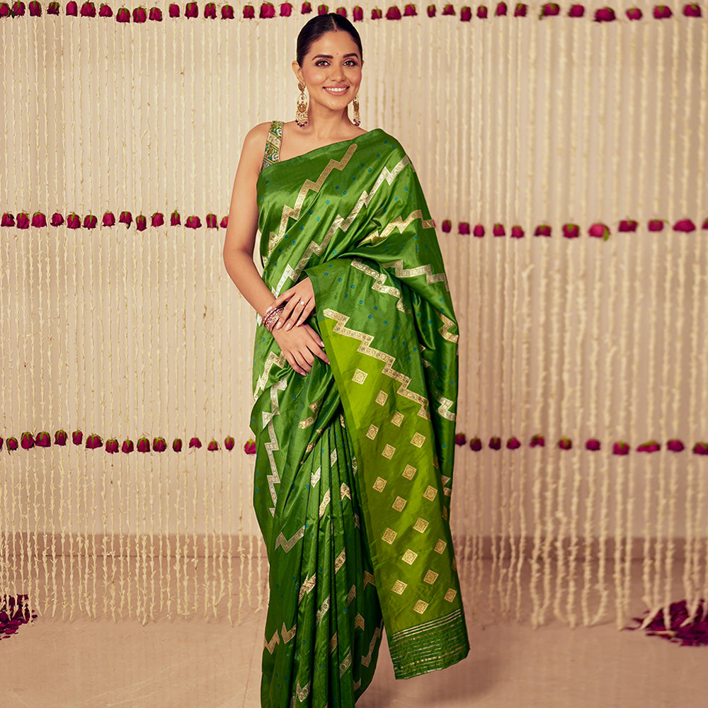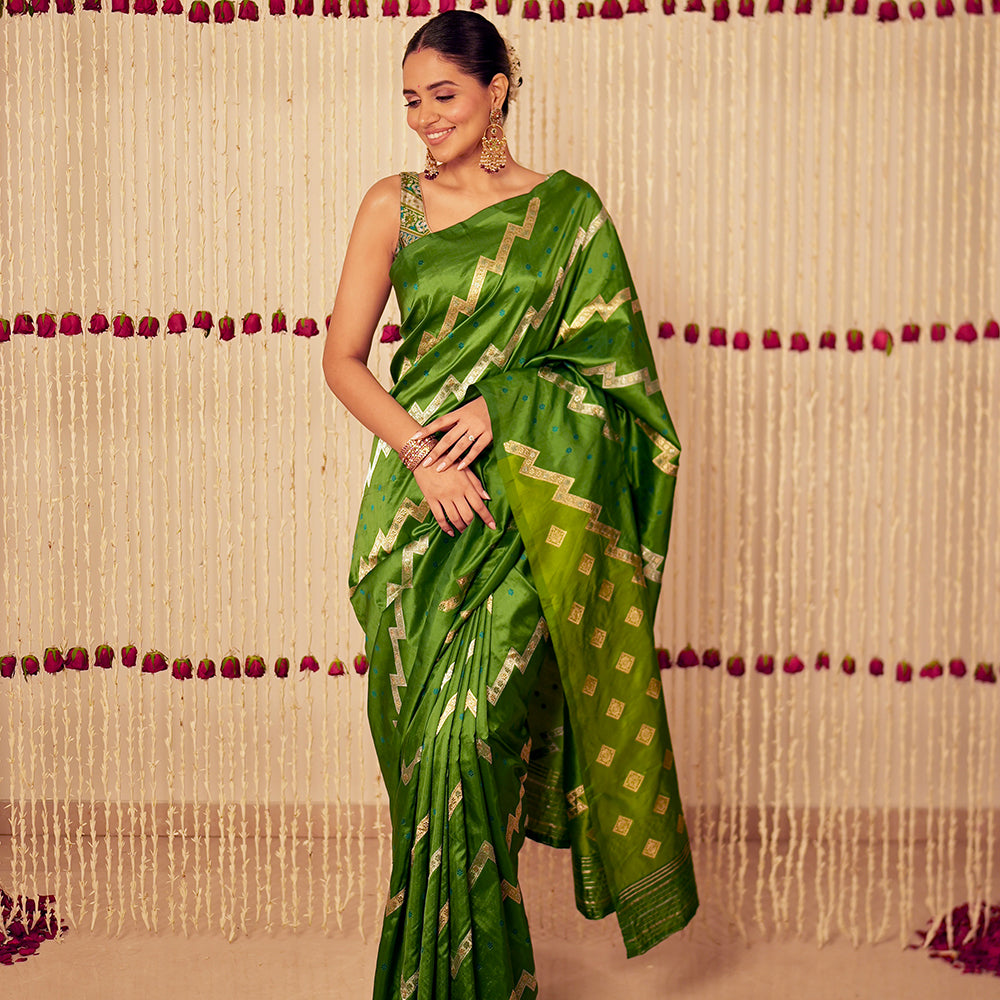 Aada Gul Banarasi Handwoven Basil Green Silk Saree