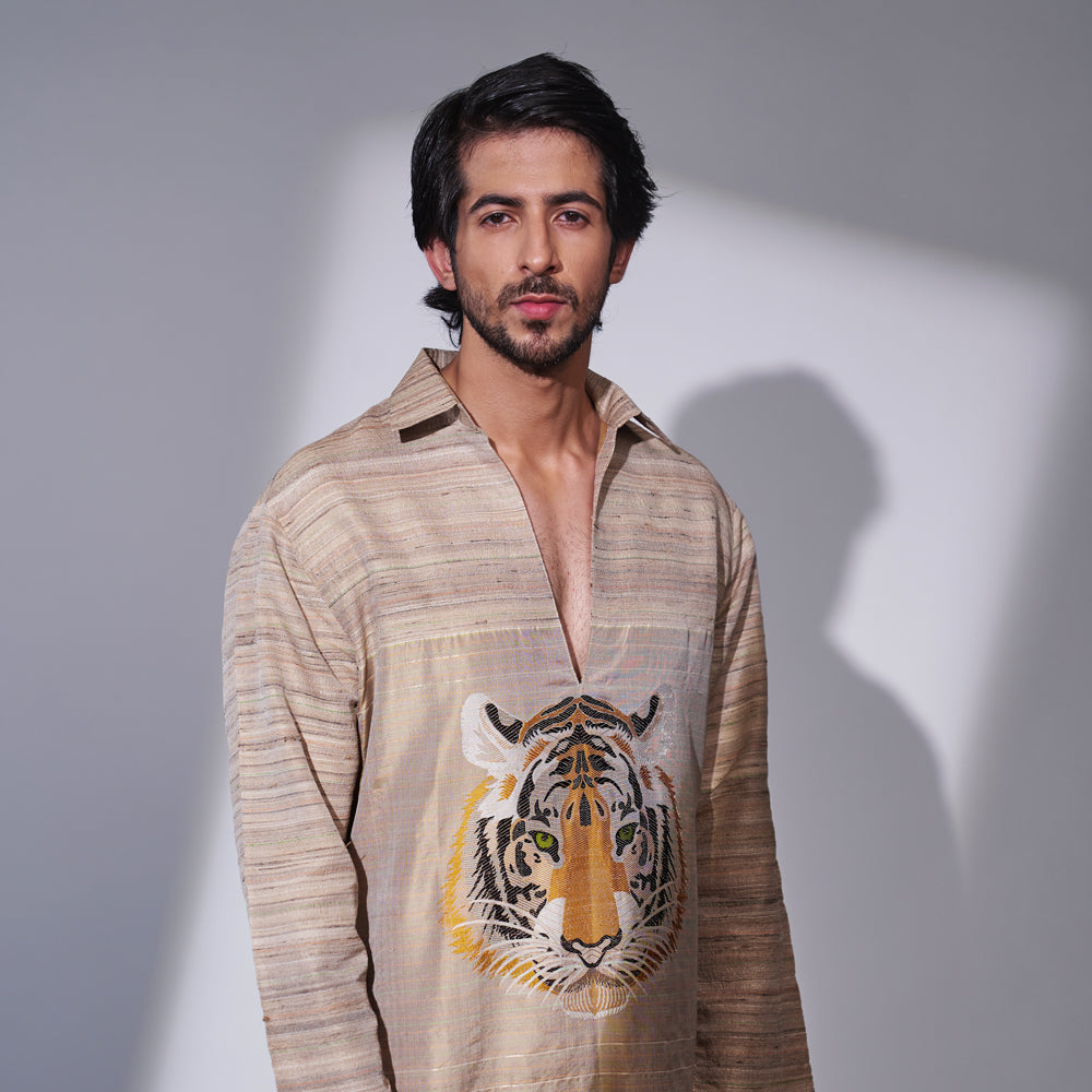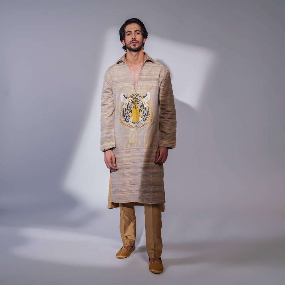 Baagh Banarasi Handwoven Mens Long Kurta