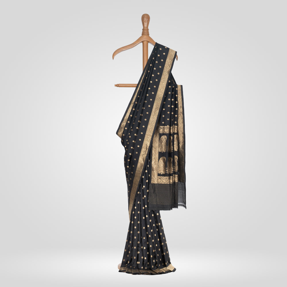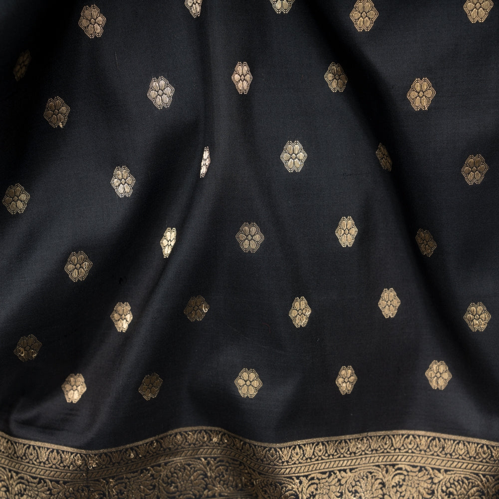 Chunri Buti Black Banarasi Handwoven Saree