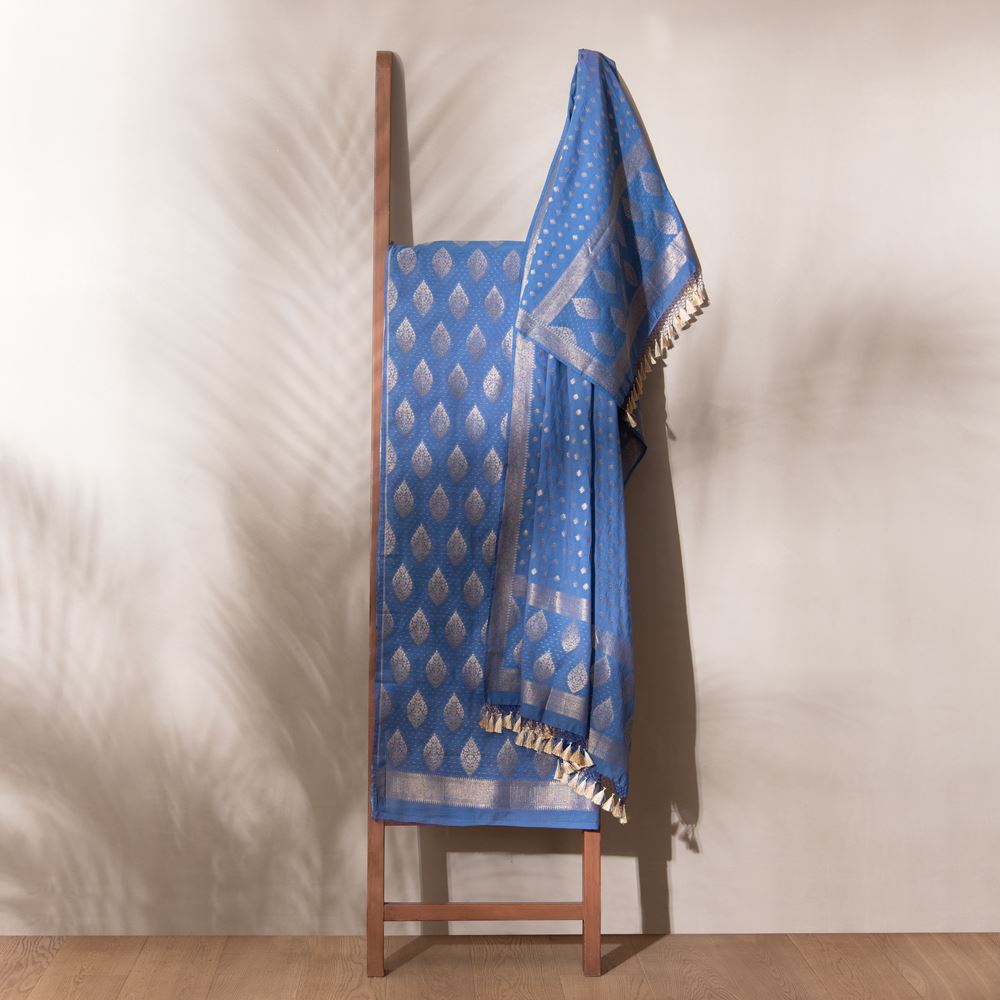 Jugni Lichen Blue Banarasi Handwoven Cotton Suit Set
