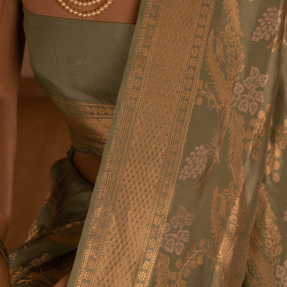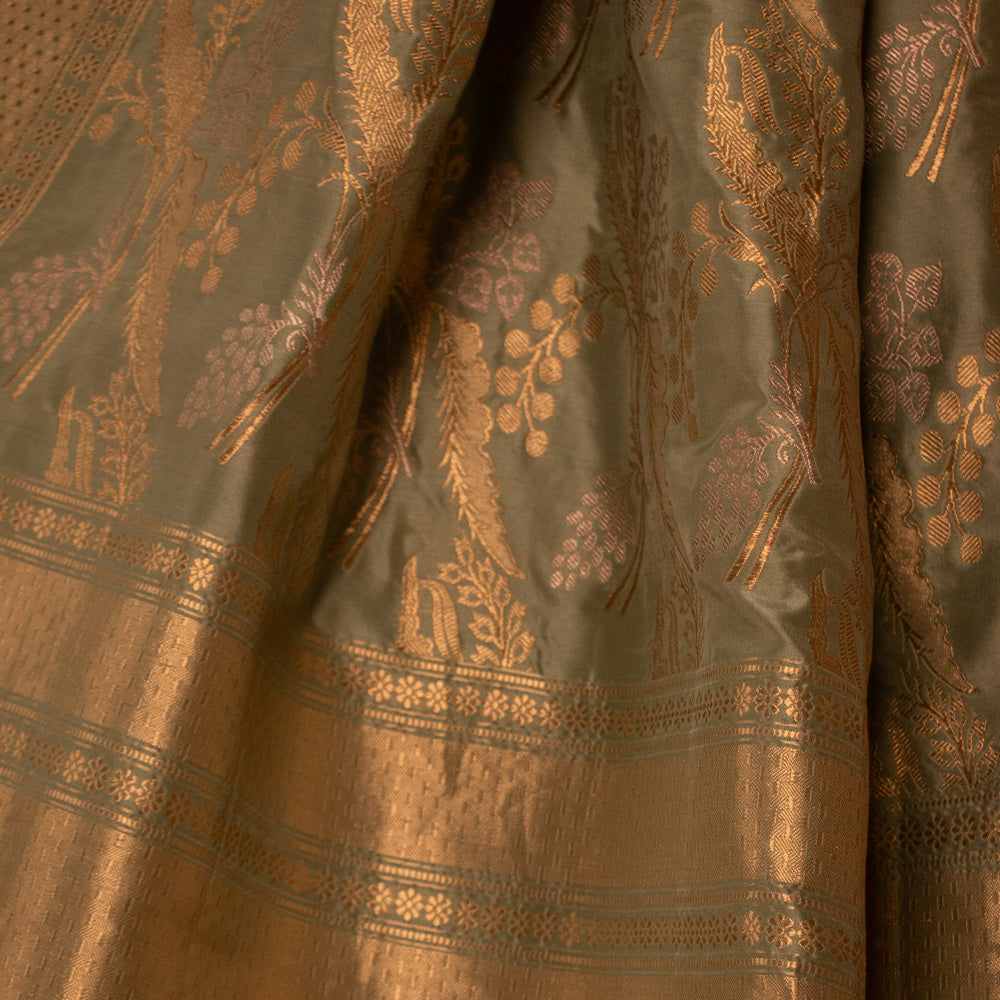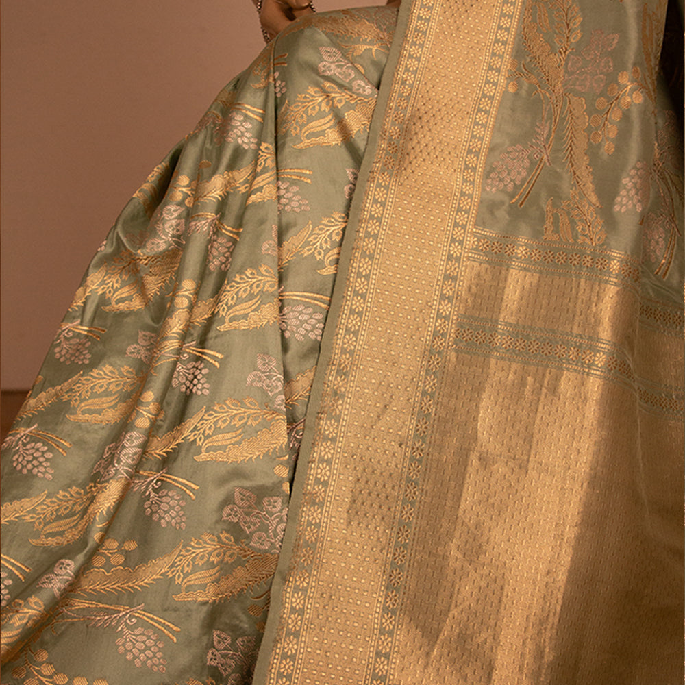 Jungla Handwoven Banarasi Sea Green Silk Saree