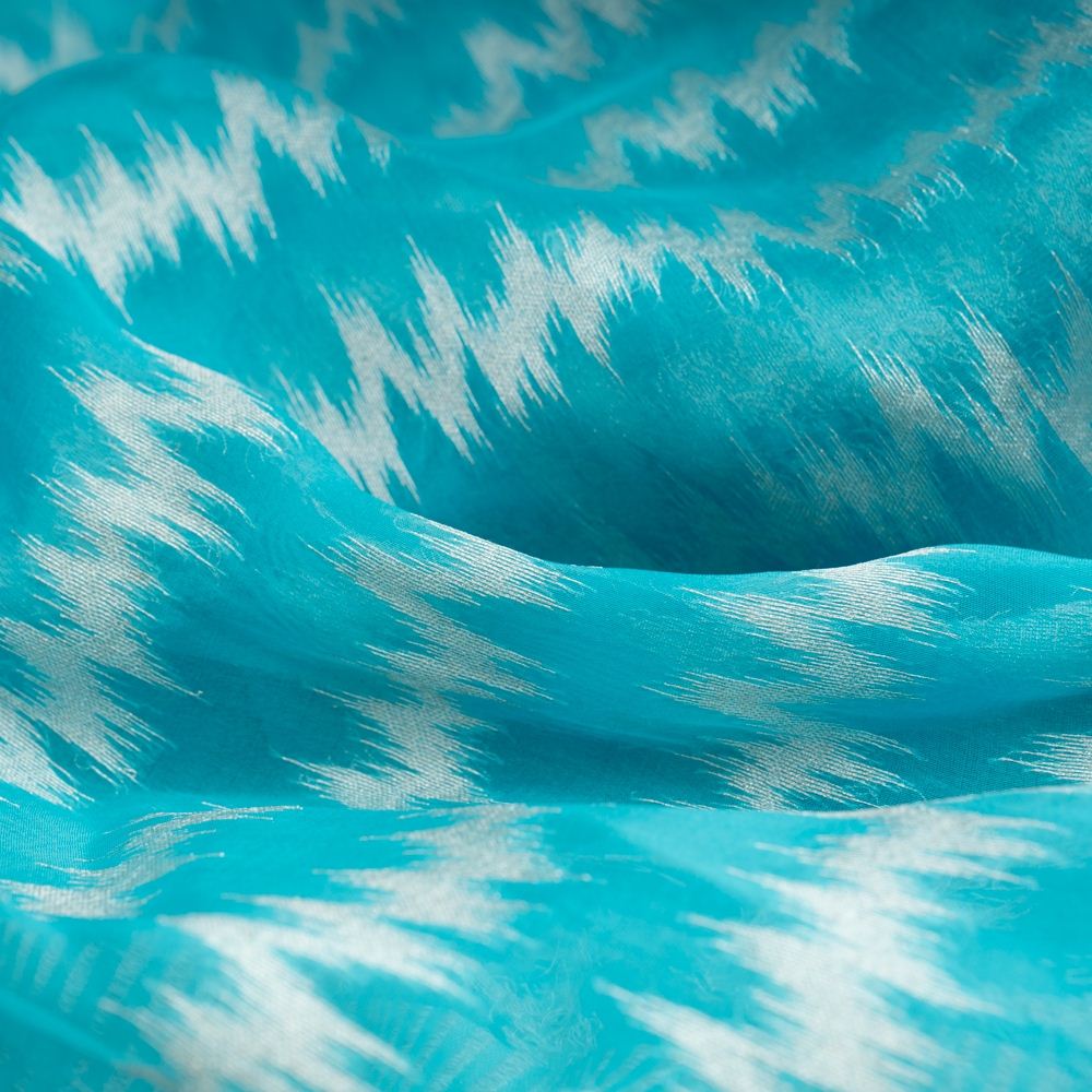 Leheriya Silver Zari Aada Turquoise Blue Kora Banarasi Saree