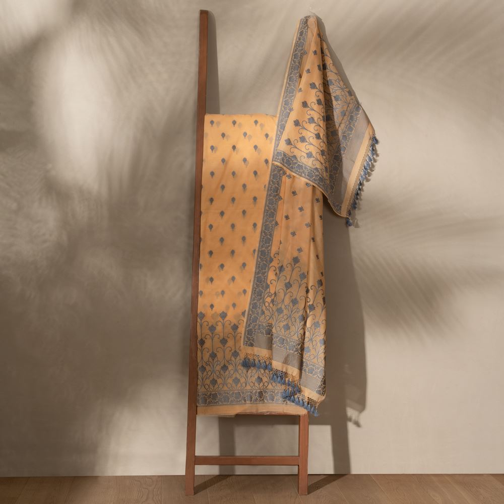 Lubna Mocha Mousse Banarasi Handwoven Cotton Suit Set