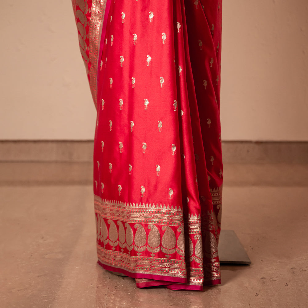 Paisley Buti Handwoven Banarasi Red Silk Saree