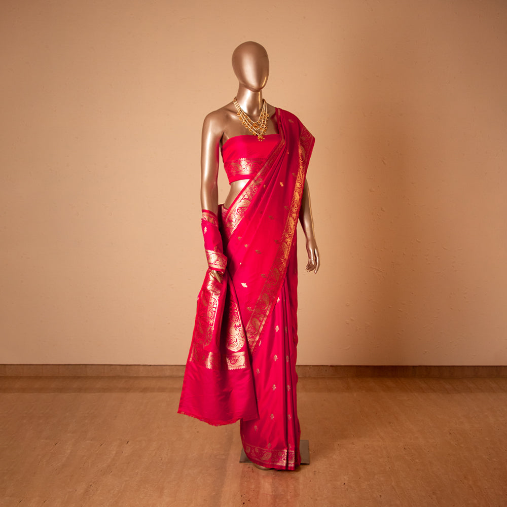 Paisley Zari Buti Handwoven Banarasi Red Silk Saree