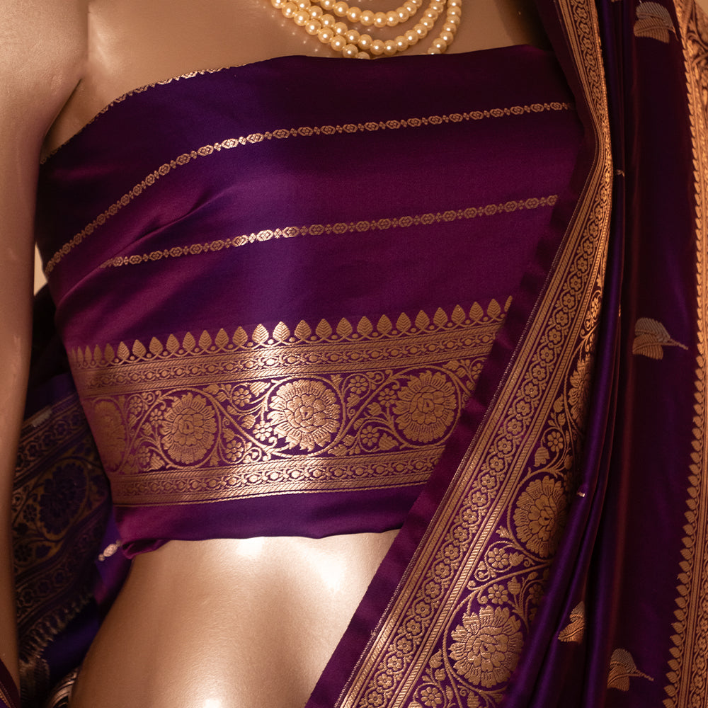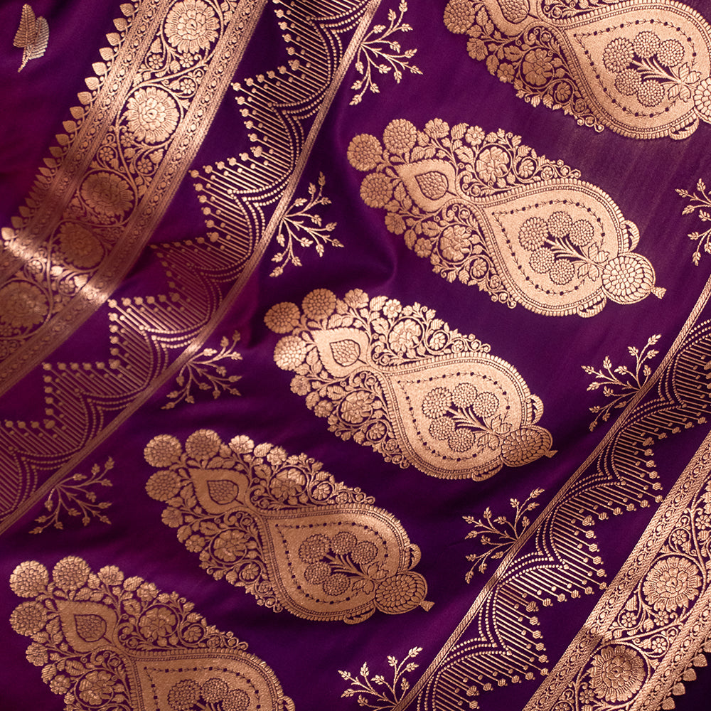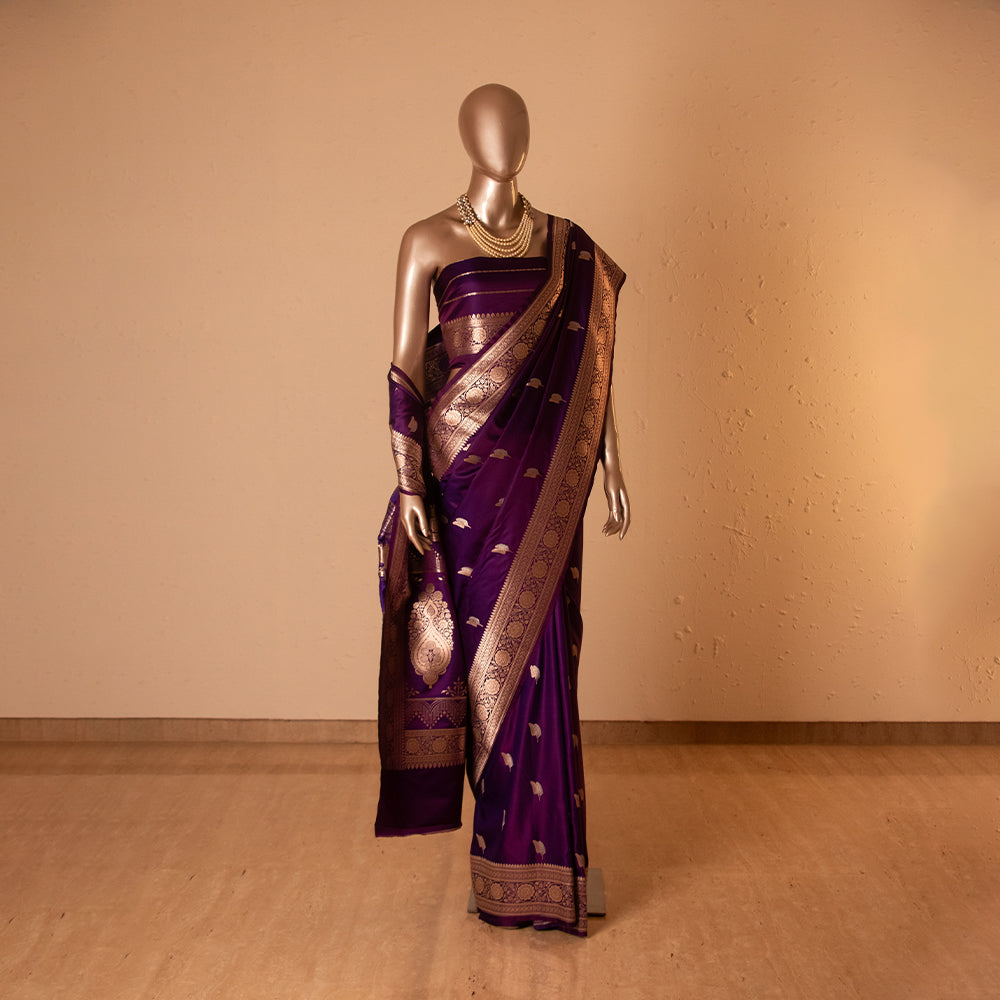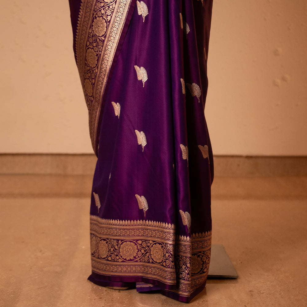 Pankh Buti Handwoven Banarasi Baingani Silk Saree