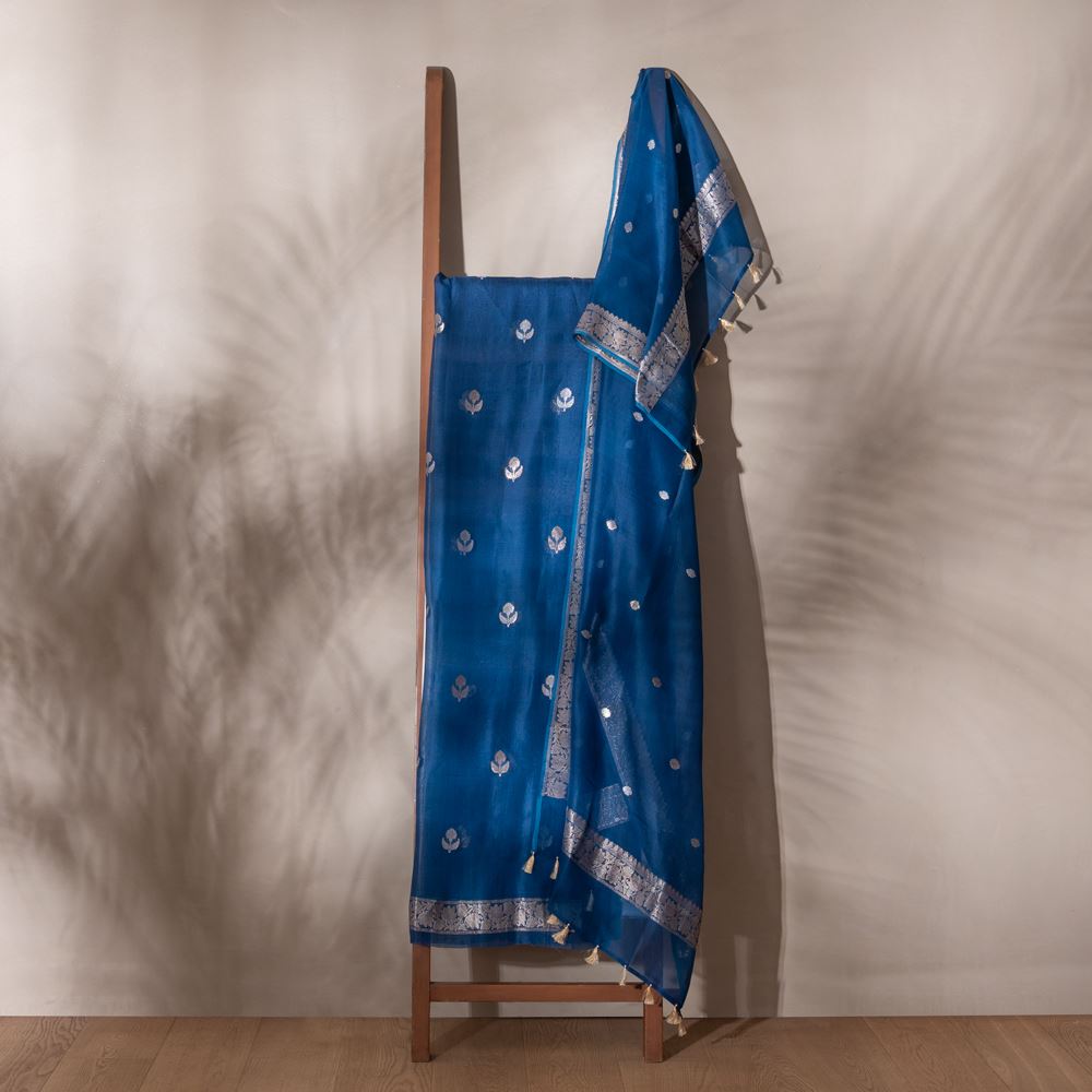 Ruksana Skydiver Blue Banarasi Handwoven Kora Silk Suit Set