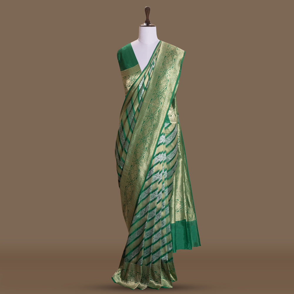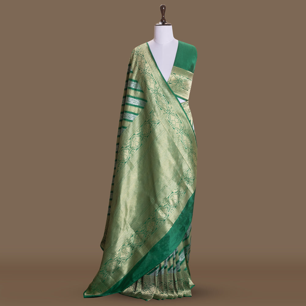 Aada Brocade Emerald Banarasi Handwoven Silk Saree
