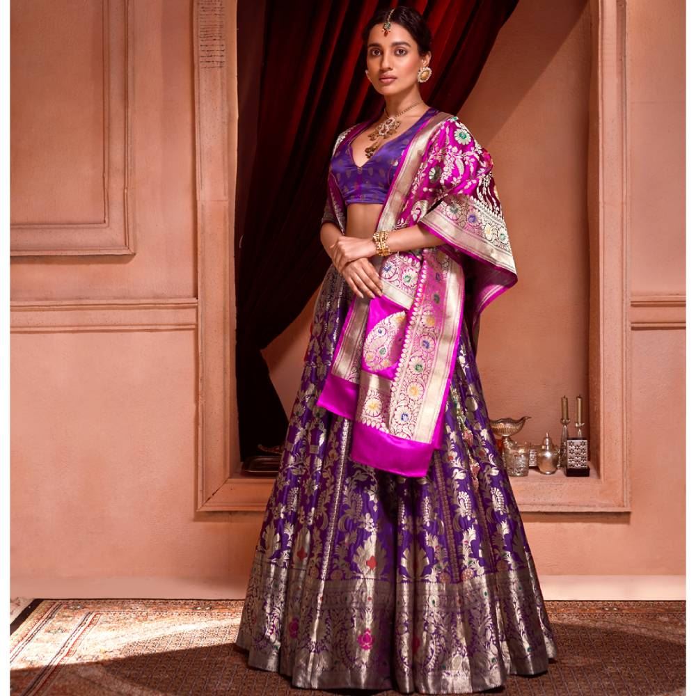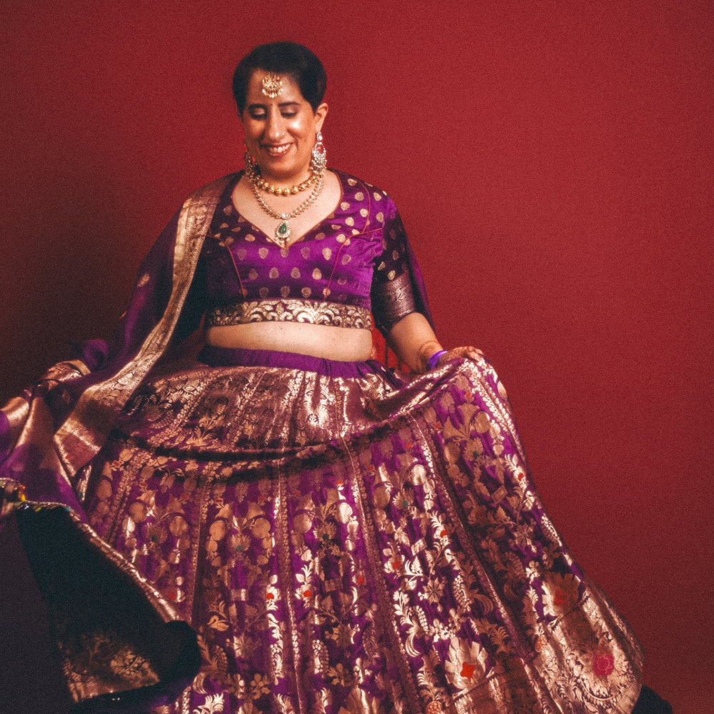This Lehenga comes with a silk organza Gulab Buti Dupatta and self brocade blouse piece inclusive of styling and tailoring.