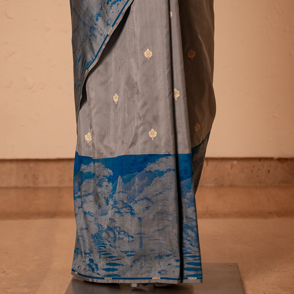 Shikhar Handwoven Banarasi Grey & Blue Silk Saree