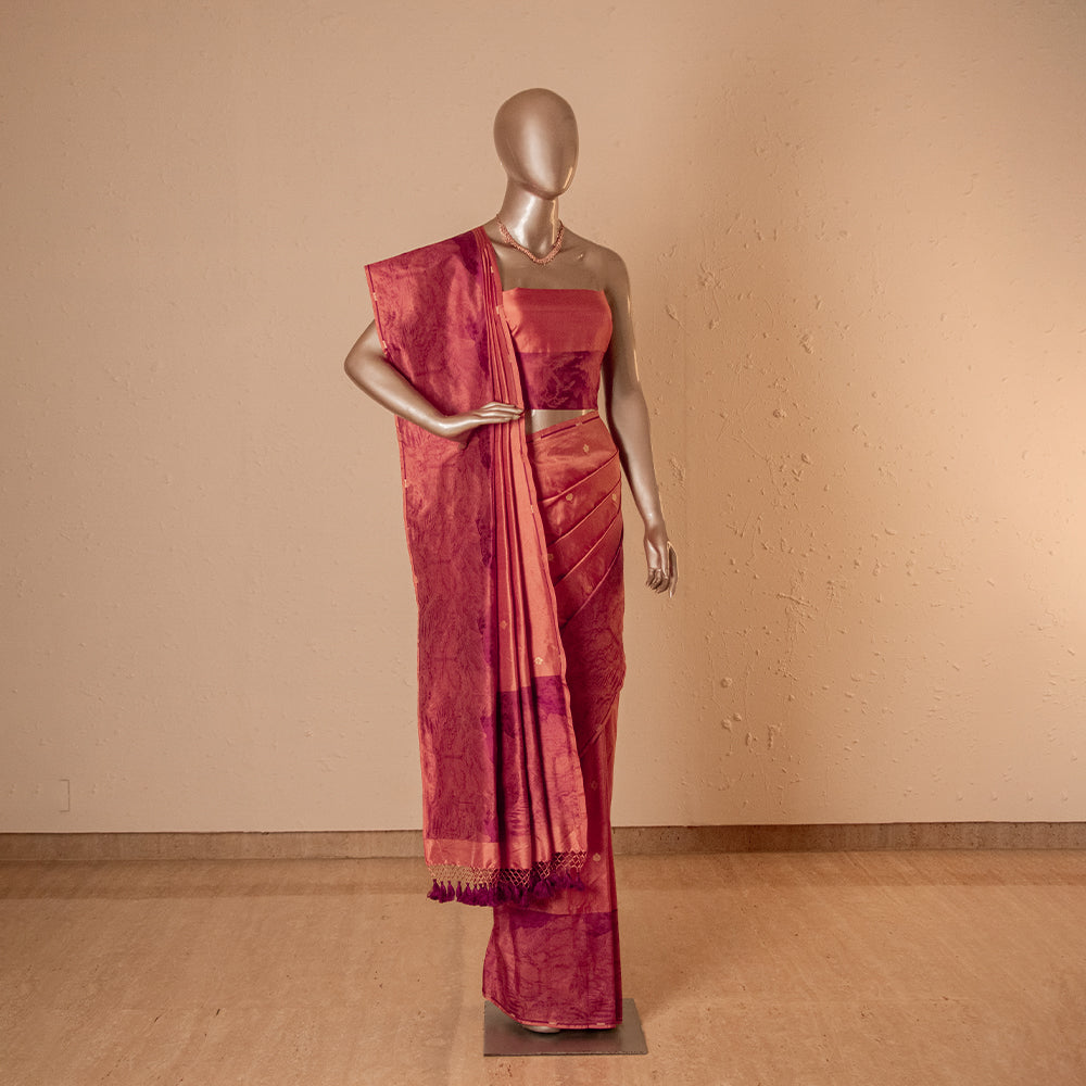 Shikhar Handwoven Banarasi Apricot & Wine Silk Saree