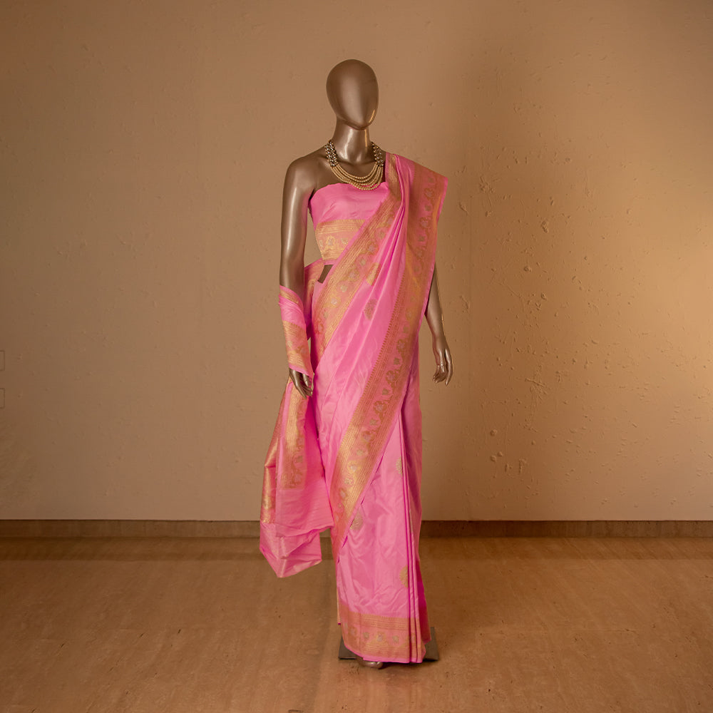 Vintage Buti Handwoven Banarasi Pink Silk Saree