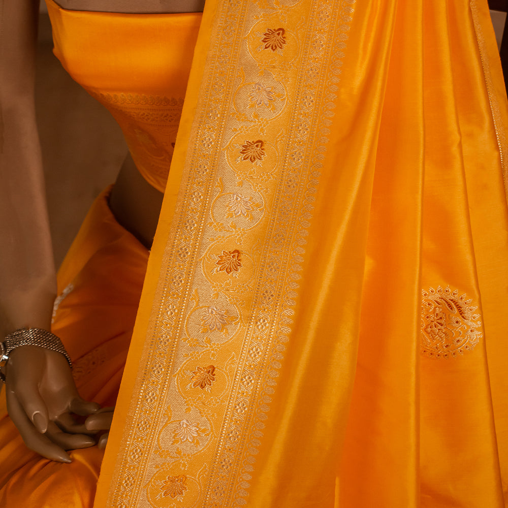 Vintage Buti Handwoven Banarasi Yellow Silk Saree